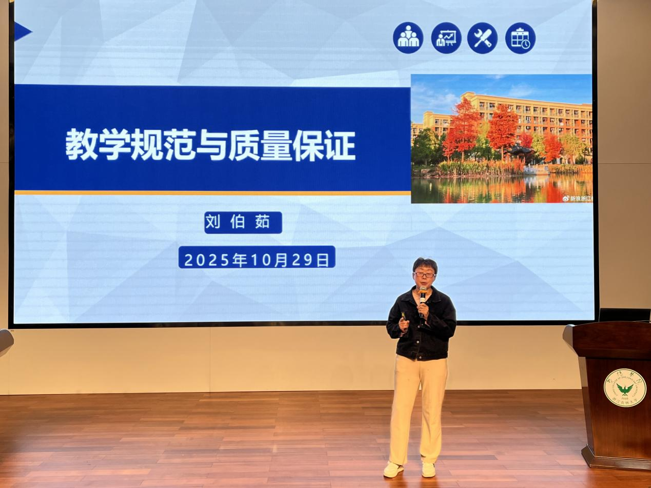 在青年教师教学规范专题讲座环节,学院专职督导刘伯茹围绕教学材料准备、课前课中课后教学规范、课程考核相关规范三个方面,系统解读了学院教学规范相关要求,强调了教学规范在教学工作中的重要性,为青年教师今后教学工作提供了清晰指引,进一步强化了其职业责任感。