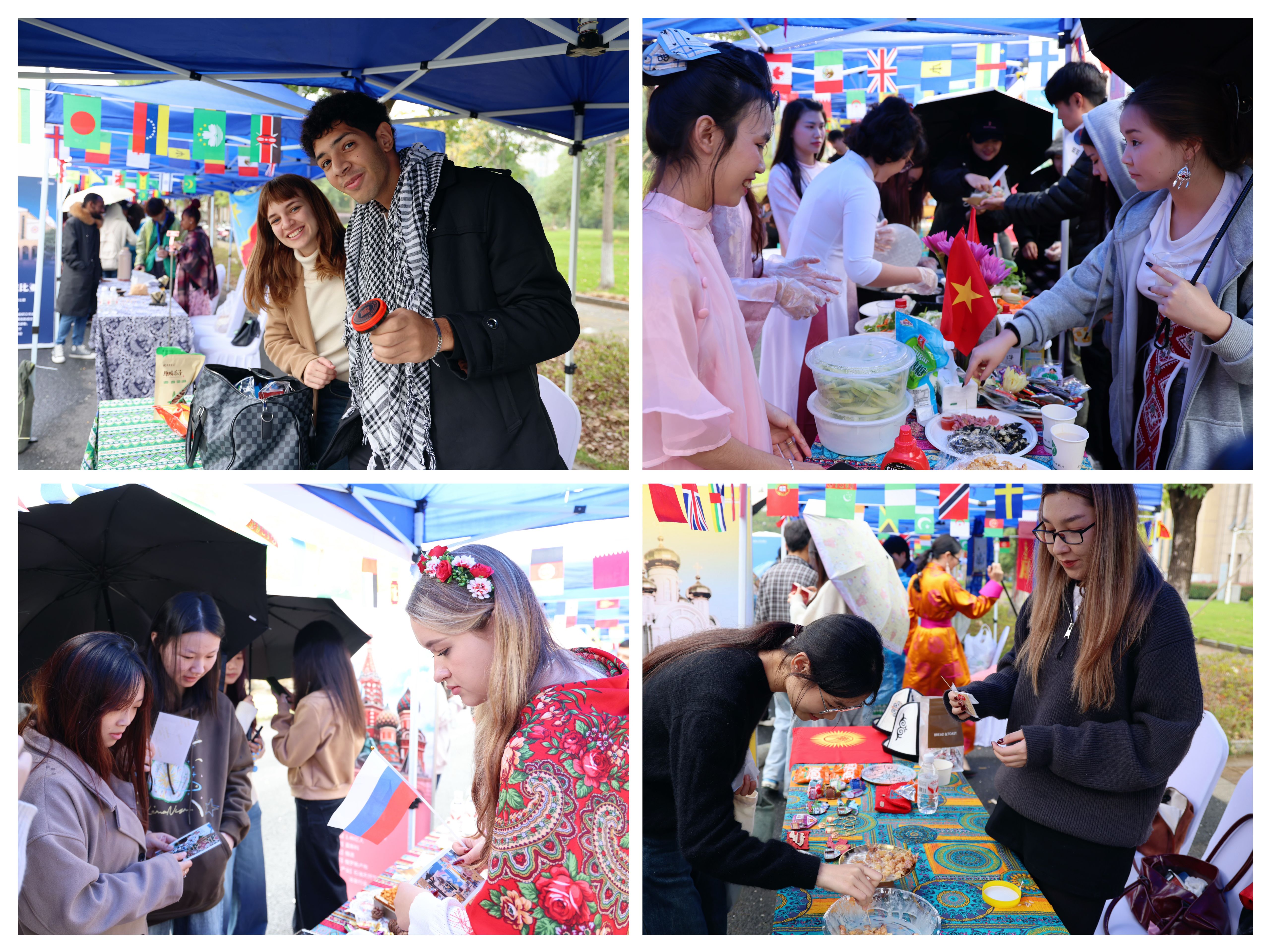 本次活动特邀来自法国、俄罗斯、塞尔维亚、越南等20多个国家的浙江农林大学国际教育学院(孔子学院)的百余名留学生共同参展。各展区主题鲜明、内容丰富多彩,留学生们身着民族传统服饰,展示各国特色手工艺品、地道风味美食及民族乐器,生动呈现了各自国家的文化魅力与人文风情。越南竹子舞的优美灵动、“节拍无国界”互动体验区的欢快气氛,更是吸引了众多师生驻足观看、踊跃参与。现场师生纷纷表示,此次活动形式新颖、体验感强,大家在沉浸式交流中深化理解,在互动中结下友谊。