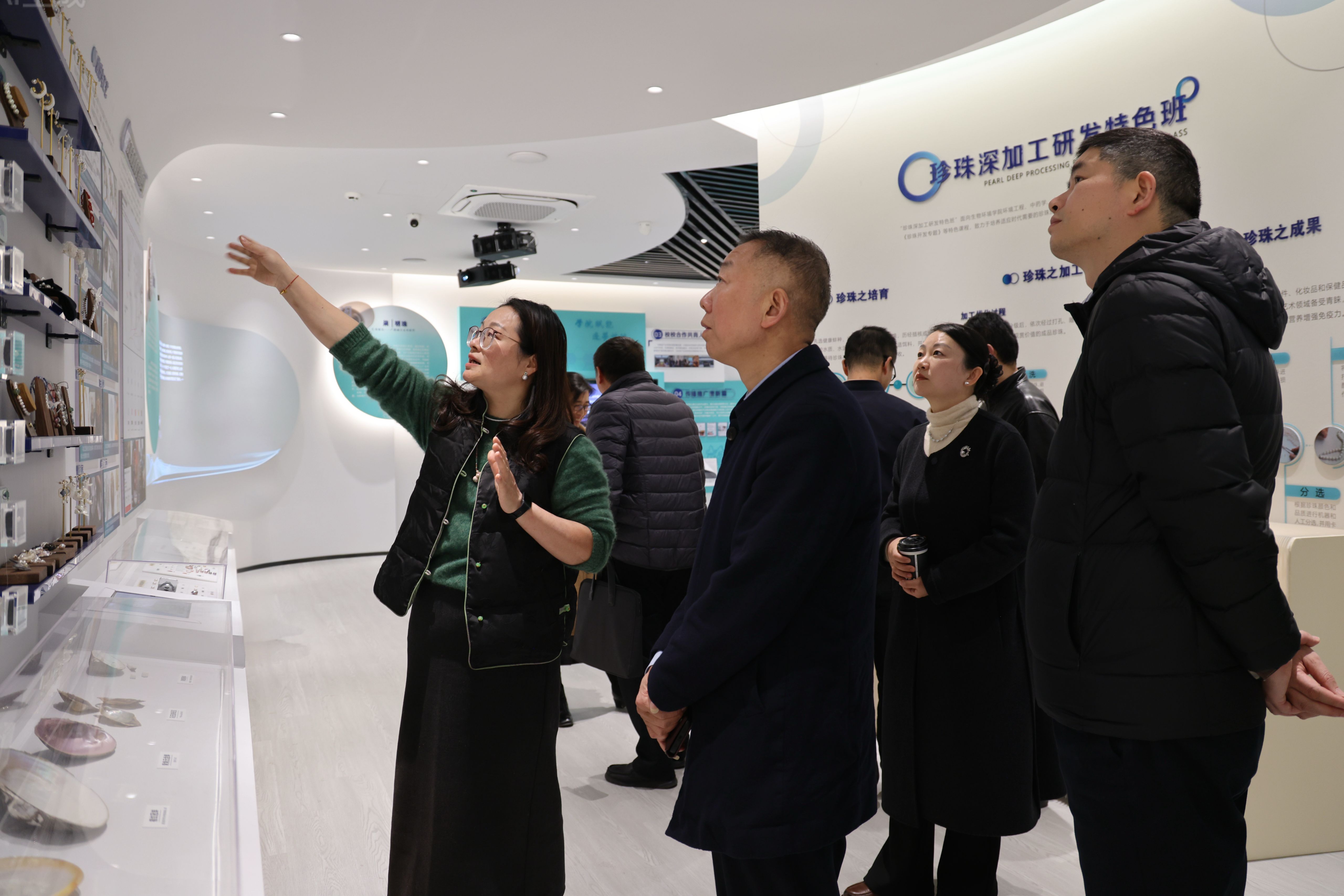 会后,吴家胜一行实地考察了中国珍珠学院、人工智能产业学院,详细了解两个产业学院的办学模式、产教融合成果及未来发展规划。