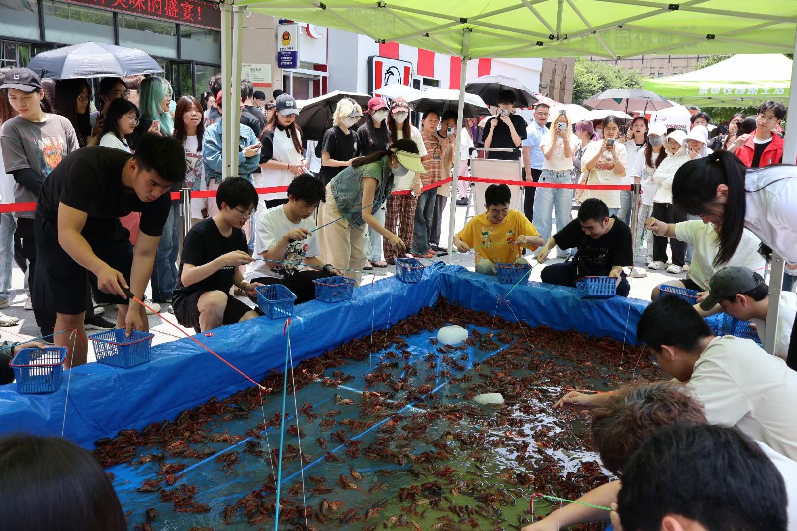 活动前期,双方精心策划、细致准备。活动当日,现场热闹非凡,学生们迫不及待地拿起钓竿,系上饵料,投入到这场别开生面的“垂钓大战”中,期待着与龙虾的“亲密接触”,以换取同等重量的各种口味龙虾美食。每当有人成功钓起一只龙虾时,现场便响起一片欢呼声,现场充满了欢笑与惊喜。