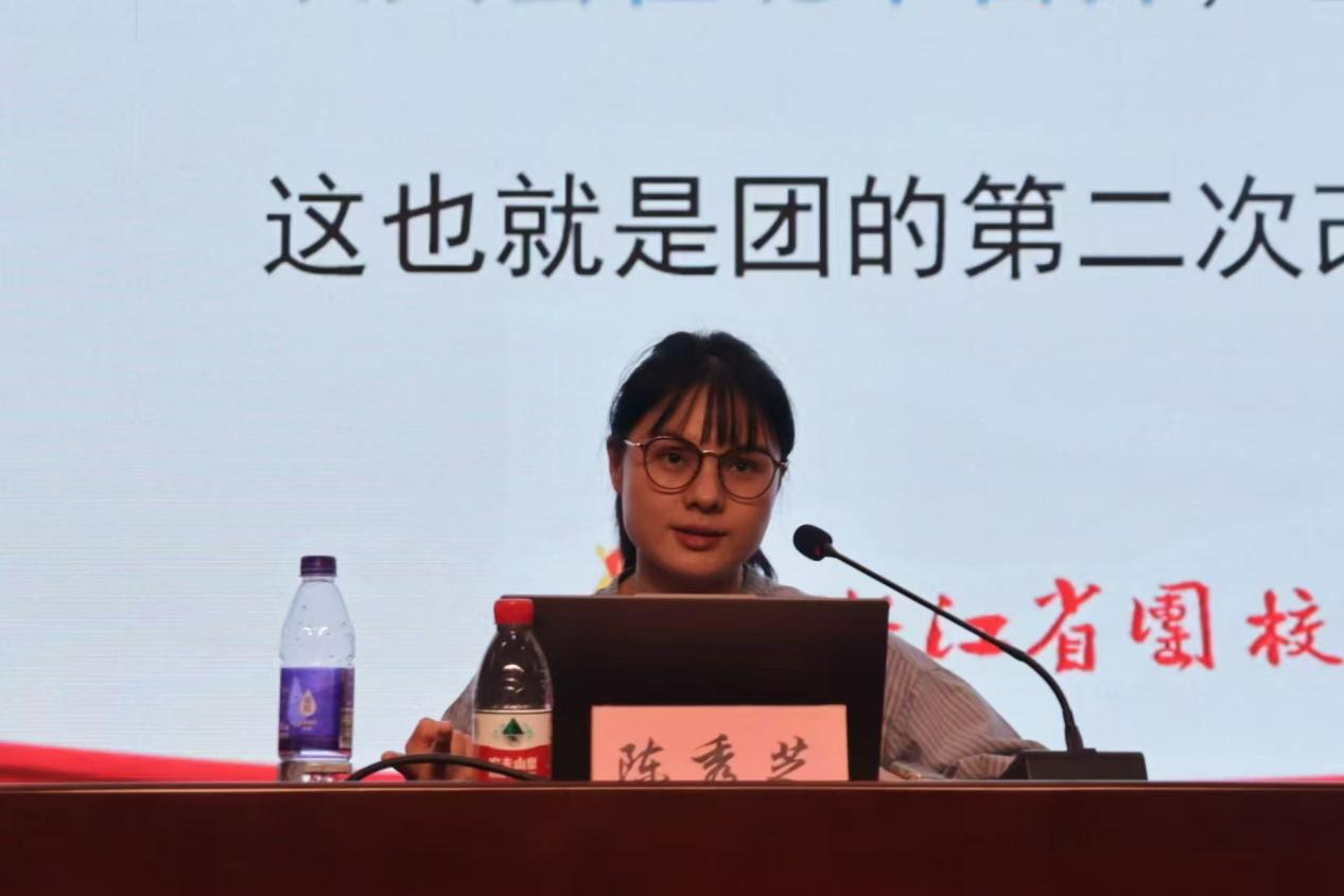 本次培训会特邀浙江省团校讲师陈秀芝担任主讲。陈秀芝围绕团的基本属性、标识使用、团员发展、教育和管理、团的组织建设以及团干部队伍建设等五个模块为我院共青团工作提供了系统指导。