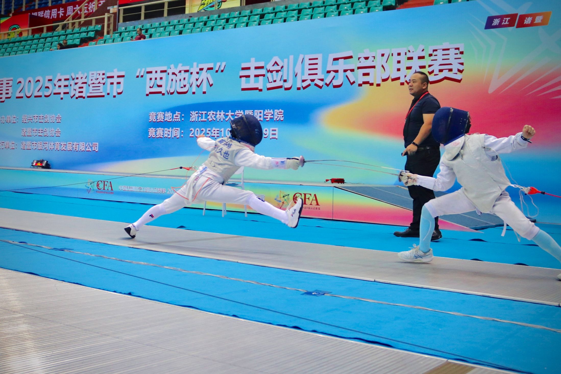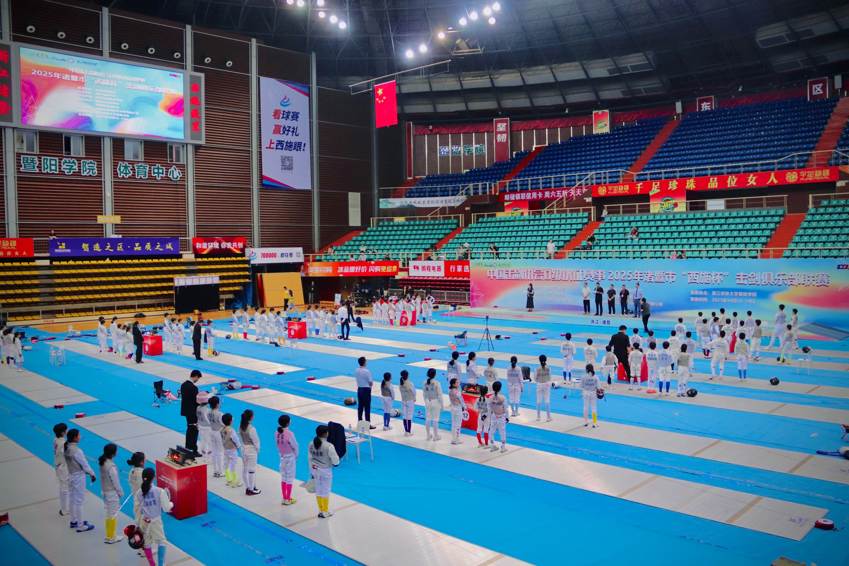 10月18日,由中国击剑协会指导,绍兴市体育局主办,诸暨市教育体育局承办的2025年诸暨市“西施杯”全国击剑俱乐部联赛在我院体育中心正式开赛。