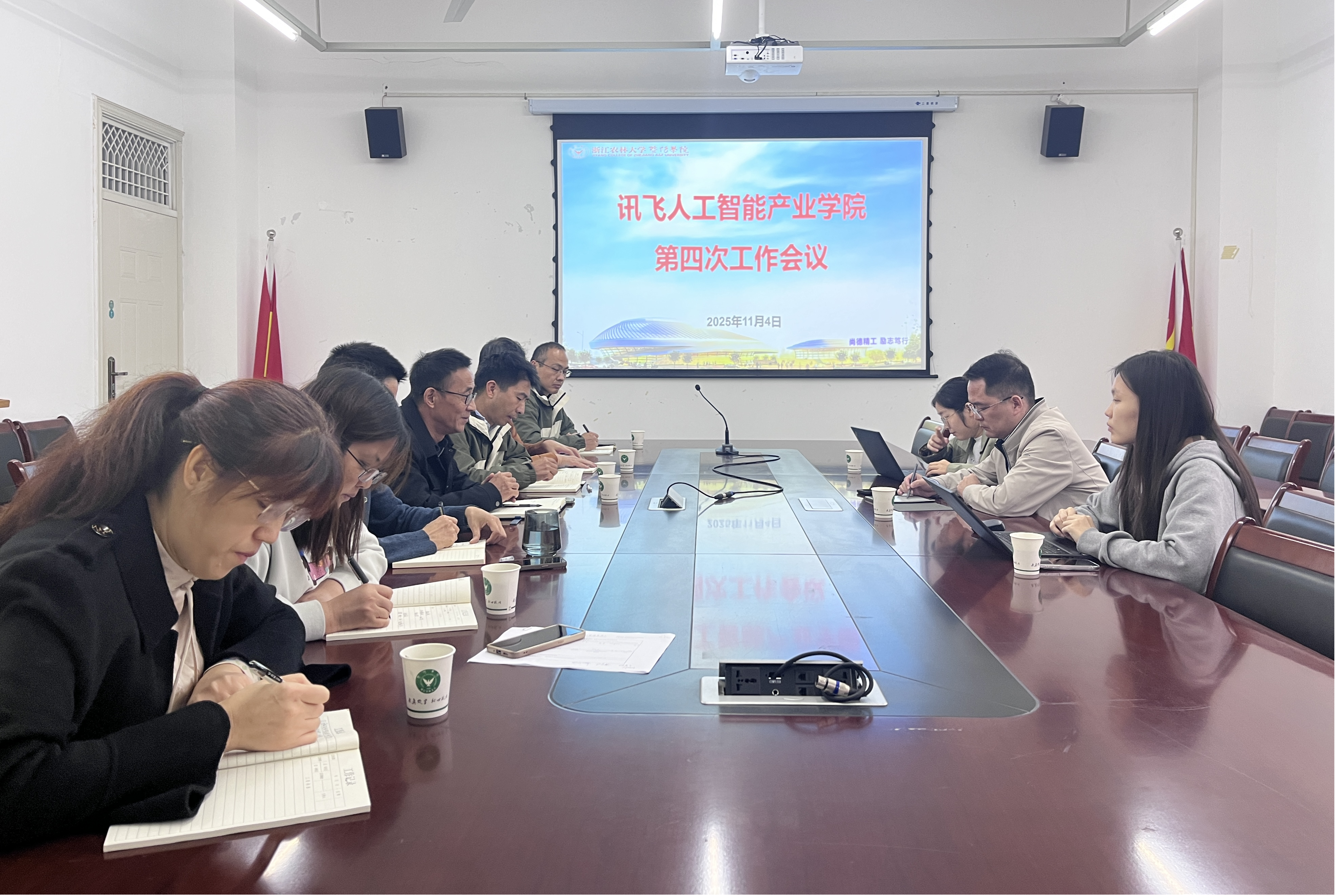 为进一步提升产业学院建设的整体效能与运行效率,确保各项工作任务有序推进、精准落实,11月4日,人工智能产业学院召开第四次工作会议。工程技术学院(人工智能产业学院)院长彭樟林、工程技术学院党总支书记林爱广、相关学科团队负责人和科大讯飞区域总监兼学院副院长彭飞及科大讯飞代表出席会议。
