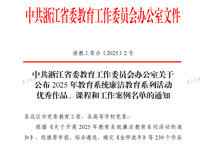 学院创意设计作品在浙江省2025年教育系统廉洁教育系列活动中获奖