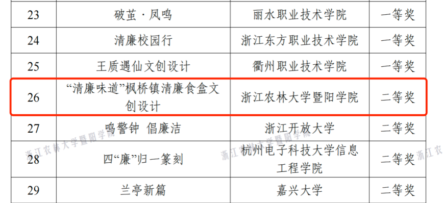 11月5日,浙江省2025年教育系统廉洁教育系列活动公布获奖名单。由我院晨晓艺术与设计学院选送的文创设计作品《“清廉味道”枫桥镇清廉食盒》荣获创意类二等奖。
