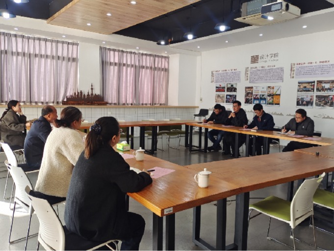 在设计学院,设计学院院长郑朝灿等接待考察团一行。座谈中,双方重点探讨了环境设计专业“第一课堂”与“第二课堂”的深度融合机制、工作室制教学模式考评方式以及人工智能(AI)在设计教学中的创新应用。会后,考察团参观了设计教学机房、环境设计专业竞赛与毕业设计作品展、文创工作室及景观设计工作室,深入了解了该院在项目化教学与创新人才培养方面的实践经验。