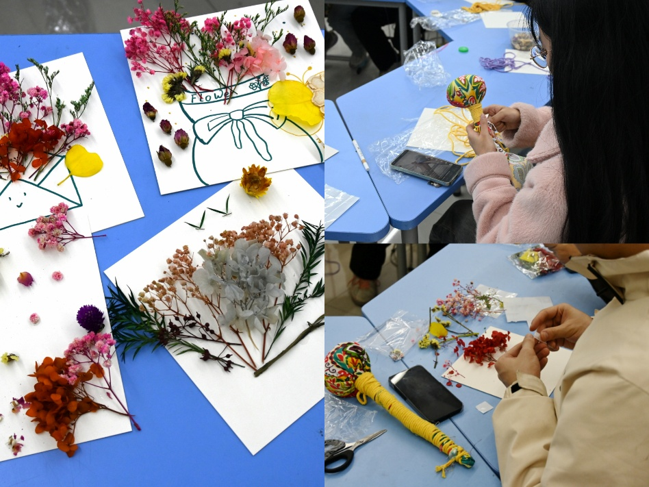 宣讲结束后,同学们在现场教师的指导下开启了艾草锤与中药贴画的制作之旅。