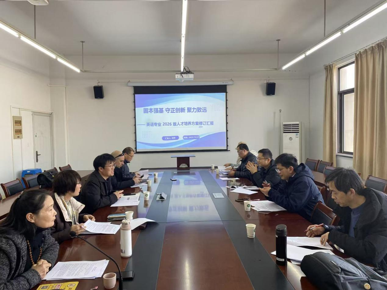 12月27日,人文学院、马克思主义学院在人文3502会议室组织召开2026版英语专业人才培养方案专家论证会。论证会由人文学院副院长(主持工作)汪永奇主持,特邀浙江工业大学之江学院外国语学院院长黄骞担任论证组组长,绍兴理工学院语言文学分院副院长刘义、浙江农林大学暨阳学院商学院电子商务专业负责人、诸暨市天利电子商务管理有限公司总经理程彤、绍兴胤隆有限公司TK运营总监宋太岳等高校与行业专家共同组成论证组。英语专业负责人及专业教师参加会议。