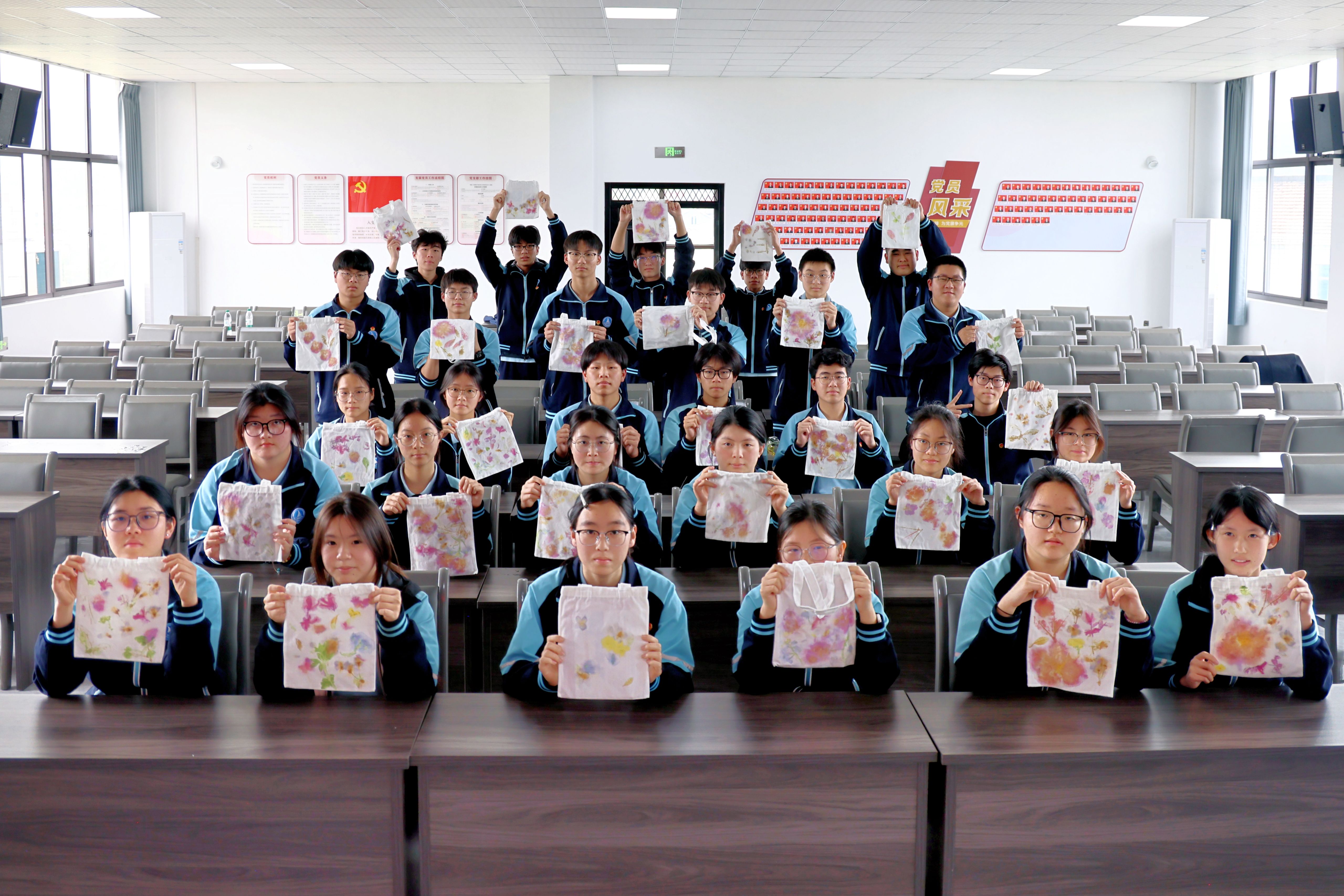 分享会结束后,晨晓艺术与设计学院学子充分发挥专业优势,与湄池中学学生结对合作开展植物拓染活动。同学们从选材构图到敲拓定色默契配合,一片片草木的纹理与色彩被定格于帆布袋上,一件件独具匠心的拓染作品在协作中诞生,成为承载红色记忆与青春温度的特殊伴手礼。