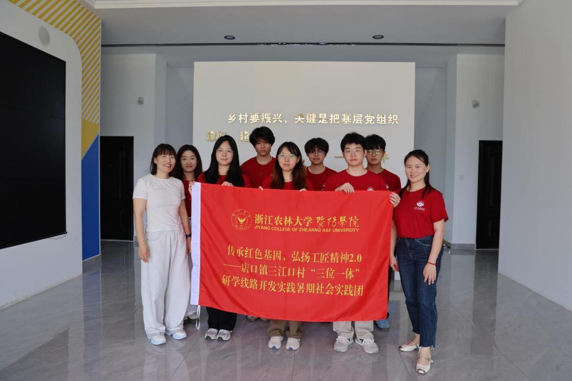 当红色记忆遇见非遗匠心,当青春力量碰撞产业实践,一场别开生面的社会实践正在诸暨市店口镇三江口村生动上演。近日,浙江农林大学暨阳学院“传承红色基因,弘扬工匠精神2.0”暑期社会实践团深入诸暨市店口镇三江口村开展调研。该团队依托多学科优势,通过系统整合当地红色文化、水灯节文化和五金产业三大特色资源,创新设计“三位一体”研学路线,为乡村文化振兴注入新动能。