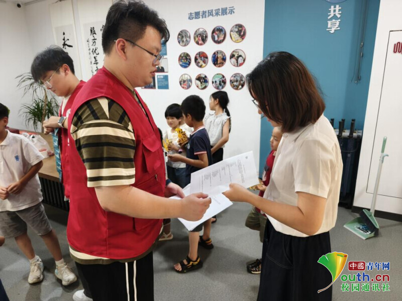 图为实践团成员在与家长探讨课程教学效果。 李侃远 供图