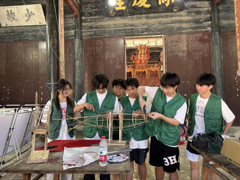 实践活动核心环节是在沈大祥、沈小祥两位老师的专业指导下进行花灯制作。学子们从零开始,系统学习了板凳龙花灯的精湛工艺。从竹篾材料的挑选与处理,到编制、固定灯体框架,再到利用铁丝辅助定型与组合,最后用宣纸精心裱糊表面并进行彩绘装饰,每一步都凝聚着传统智慧与匠心。